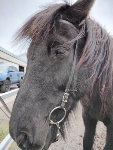 25kmほど離れたブラックサンドビーチまでトレーラーに相棒の馬を載せて移動しました。
