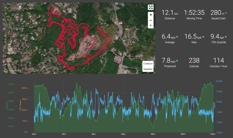 ・12kmあまりのコースのほとんどはエンデュランスコースと思われ、速歩の割合が多かった(Equilab記録なし)。外乗スタート前に15分程度の屋内馬場レッスンがあった。膝でしめつけず、膝を開くようにアドバイスを受ける。