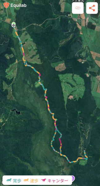 ・馬は満貴、19歳の道産子、繋がれている段階から気になっていた馬。従順で軽快だが隙あれば草を狙っている。6頭の隊列で最後尾なので直前の馬が遅れ気味なので、この馬の能力を十分発揮できなかった。自分以外の4人は1日コースの常連さんだが騎乗レベルはそれほど高くなく馬間が一定ではない。