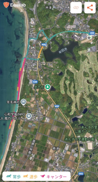 ・初回が田園コース、今回がビーチコース、残る川コースと森コースに次回以降トライしたい。カナキャンは九州2回、八ヶ岳2回だが、馬質を含めすべてがハイレベルで、おすすめ。