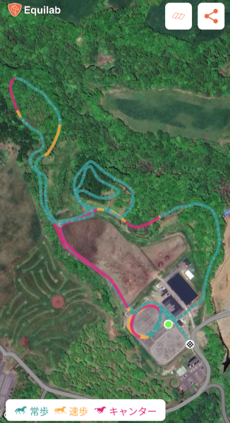 乗馬はゼンノルジェロ、中央4勝のオープン馬。馬場での準備運動ではそこそこ動いてくれたので期待したが、林間コースは前日の雨の影響もあって所々ぬかるんでいるためか常歩ではほとんど進んでいかず先導馬についていくのに苦労する。現役時代は重馬場得意と評価があるのに・・・。速歩・駈歩区間はそれなりに軽快な動きを見せる。林間コースは高低差が少なく外乗には物足りない。
